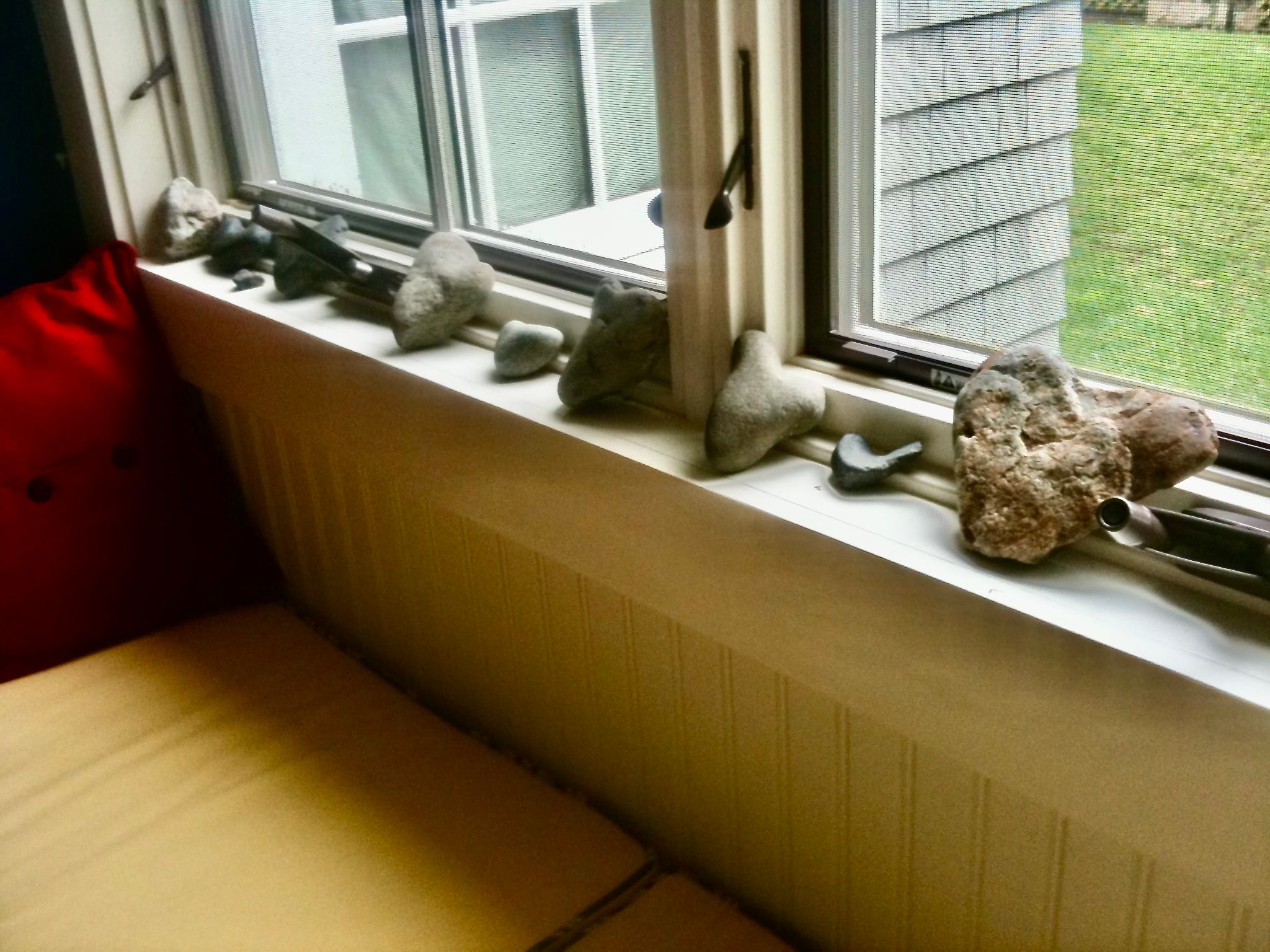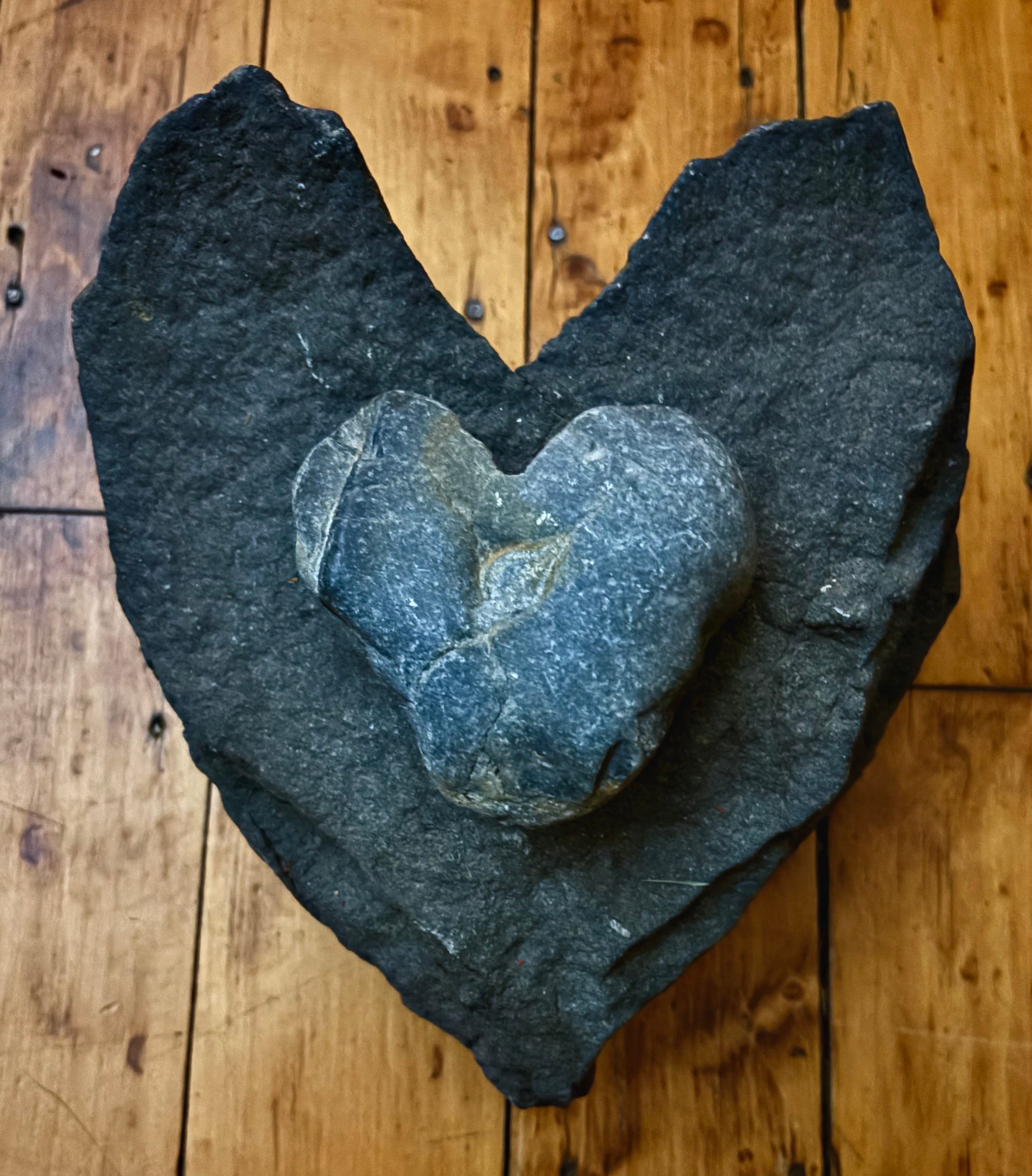 I’ve collected heart rocks all my adult life, since I first started finding them in 1982 on the rocky beaches of Mt. Desert Island. They show up like the four leaf clovers that have been a constant for me since I was a child.