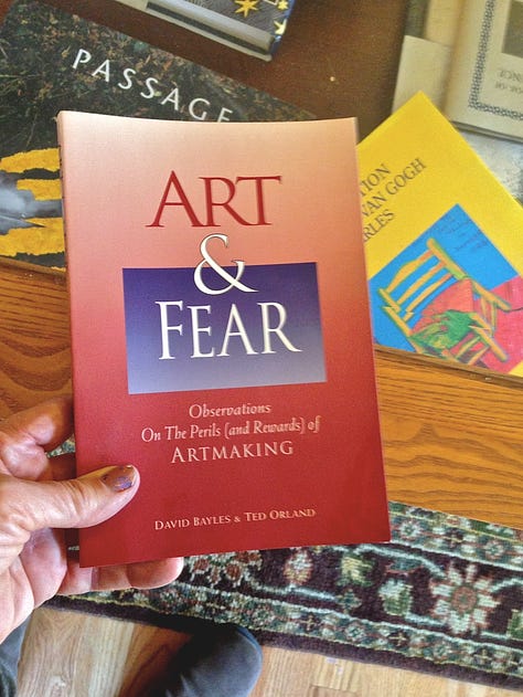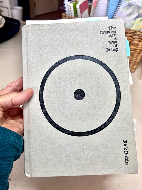 Artist/writer/thinker all-around amazing and inspiring human Danny Gregory has written a lot about facing our creative fears. I’ve ruminated and written on this topic as well. And then of course there’s the incomparable Rick Rubin, and his 2023 tome The Creative Act: A Way of Being. I’ve read and reread it, with lots of underlining, and it remains a go-to source of inspiration about living this creative life with its perils and gifts. I delivered a 2023 presentation entitled The Drive to Create: Spirit as an Essential Aspect of Artmaking which referenced that book, with my own thoughts and observations woven in. Yet another book that has helped me find my way through this ego-maze stuff is Art & Fear: Observations on the Perils (and Rewards) of Artmaking by David Bayles and Ted Orland. (first published in 1994, folks, and still as timely as ever— updated in 2001.)